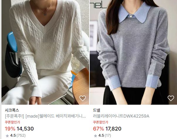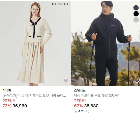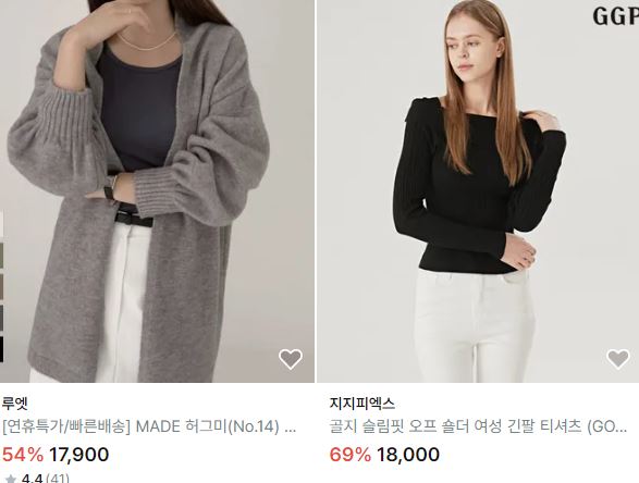 할인 품목 : 티셔츠, 가디건, 자켓 등