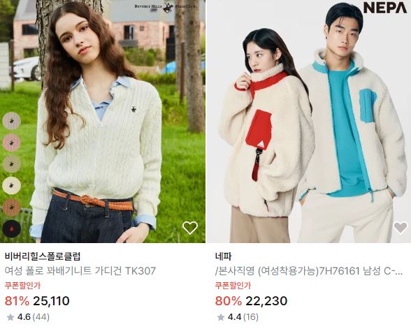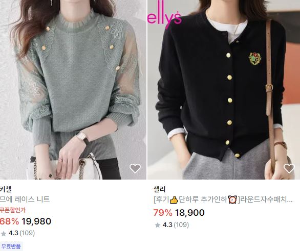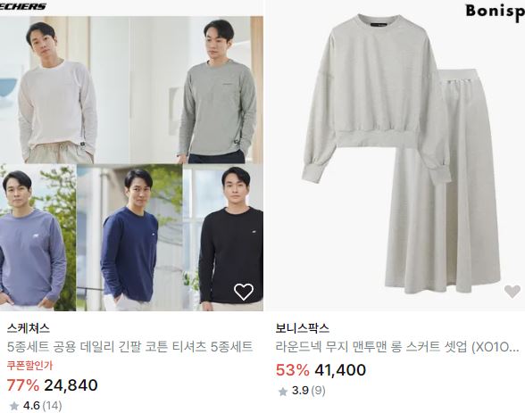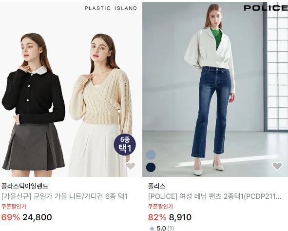 할인 품목 : 티셔츠, 가디건, 자켓 등