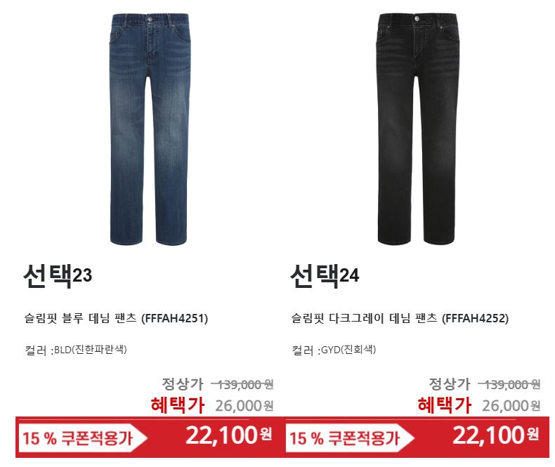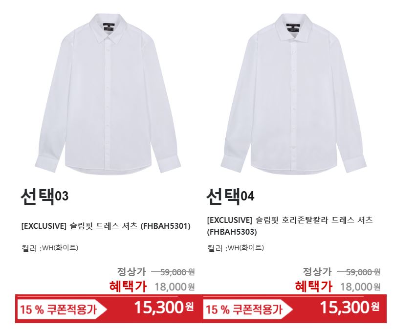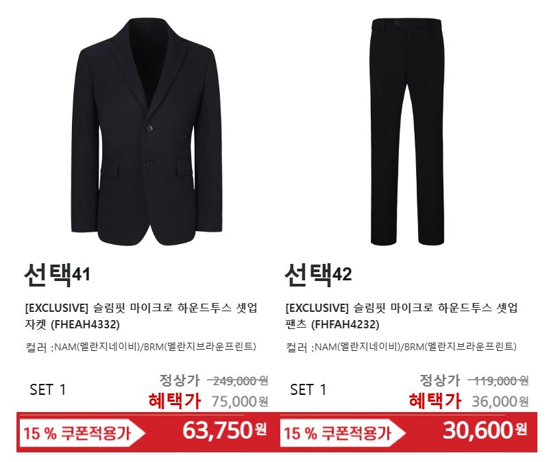 할인 품목 : 셔츠, 니트, 정장 등