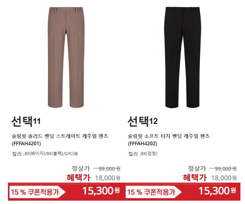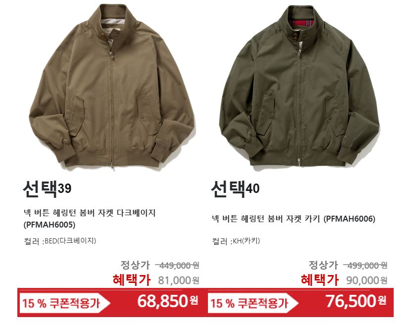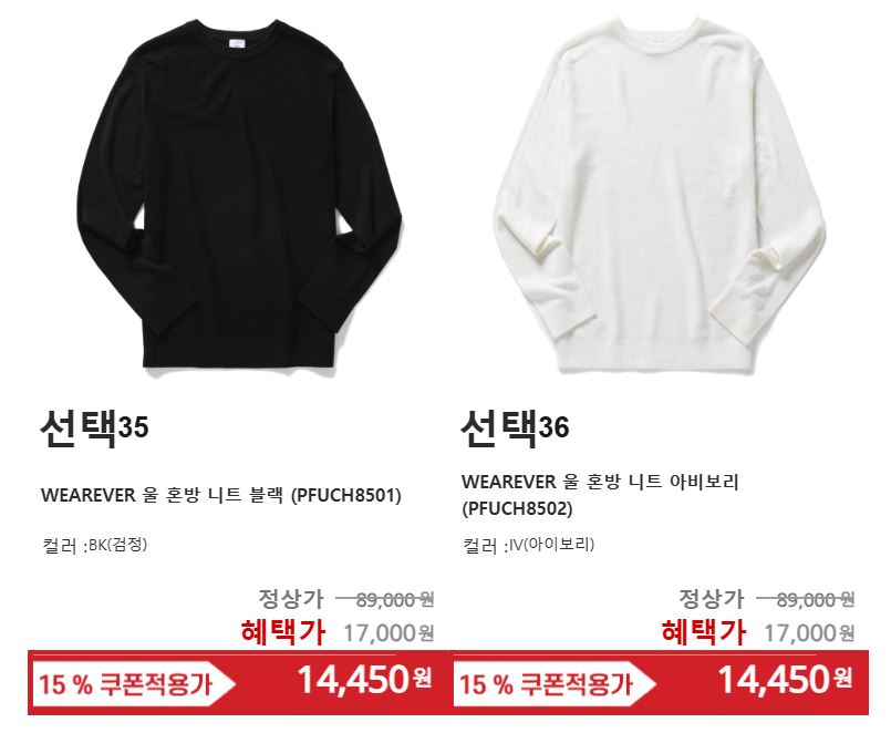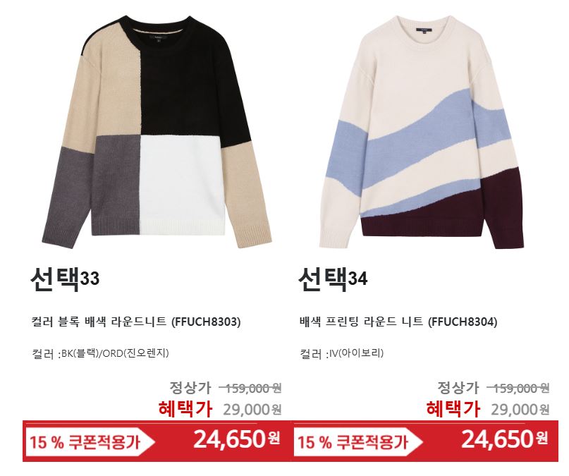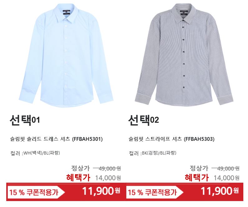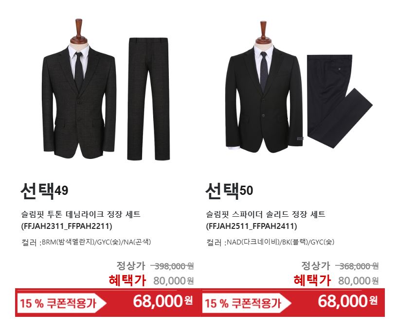 할인 품목 : 셔츠, 니트, 정장 등