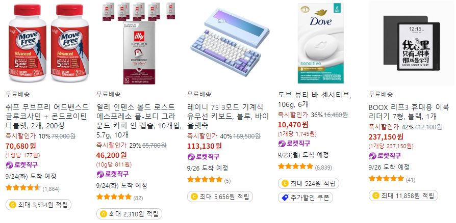 쿠팡 다양한 제품을 할인 판매하네요.