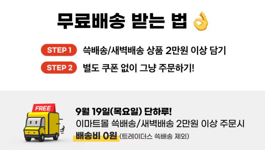 이마트몰 쓱배송/새벽배송 2만원 이상 주문시 무료배송