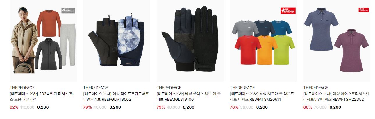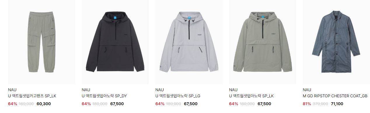 할인 품목 : 티셔츠, 자켓, 팬츠 등