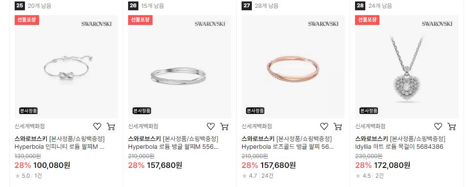 스와로브스키 다양한 제품을 할인 판매하네요.