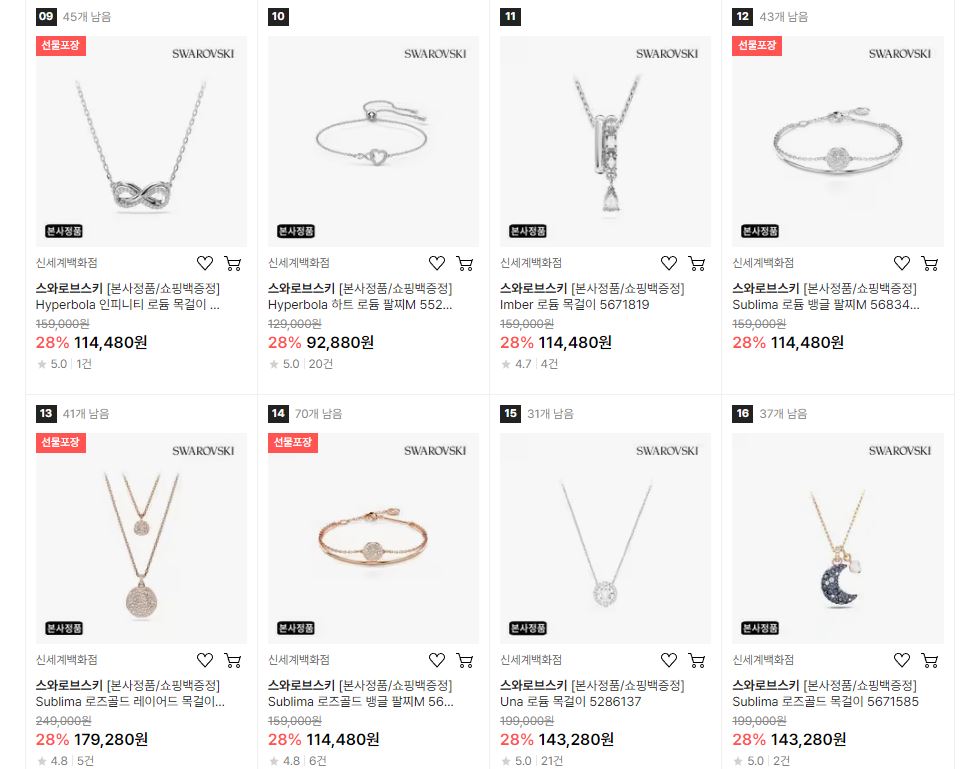 스와로브스키 다양한 제품을 할인 판매하네요.
