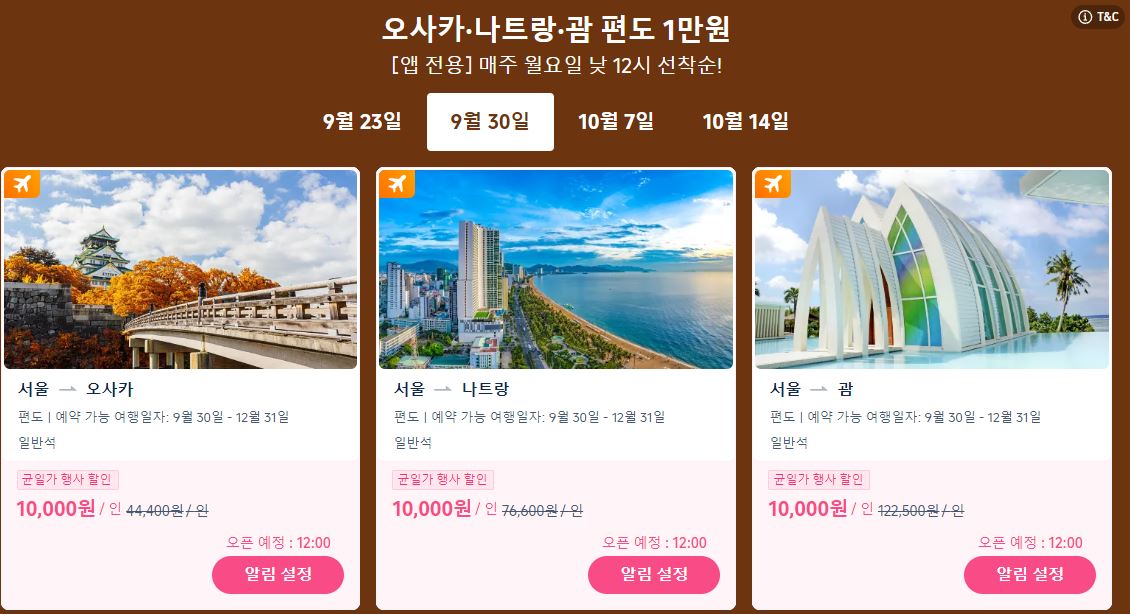 할인 품목 : 항공권, 숙박권 등