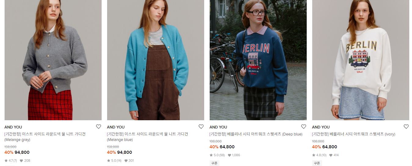 AND YOU 다양한 제품을 할인 판매하네요.