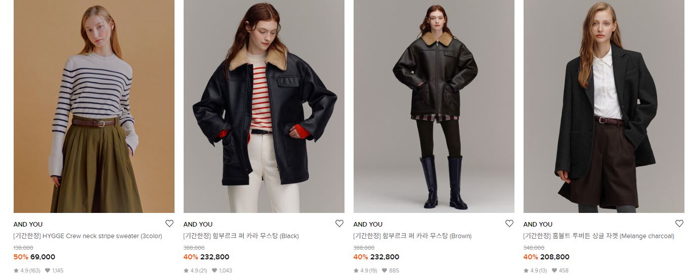 AND YOU 다양한 제품을 할인 판매하네요.