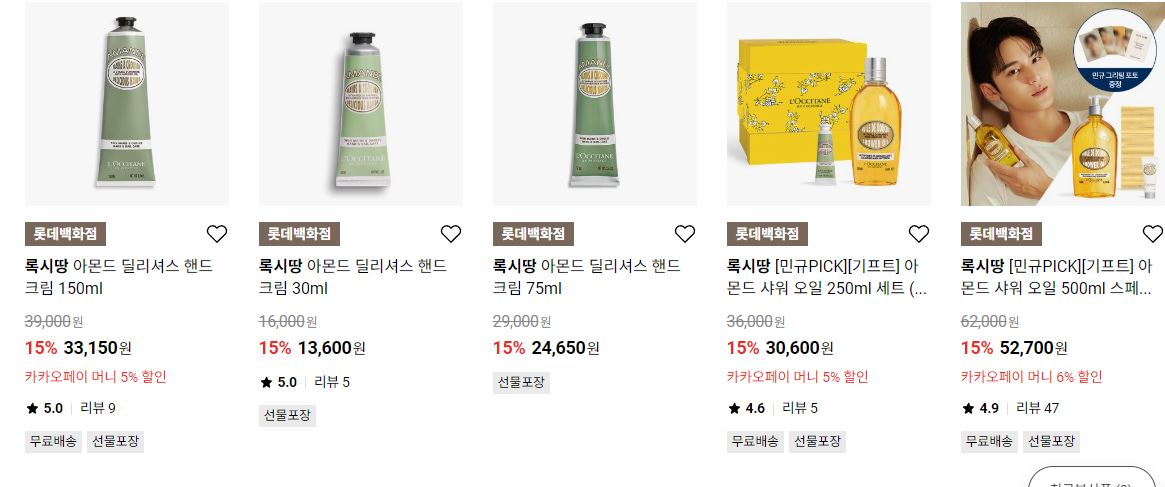 할인 품목 : 핸드크림, 샤워오일, 바디밤 등