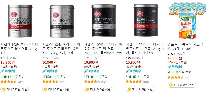 할인 품목 : 과자, 과일, 커피, 축산물 등