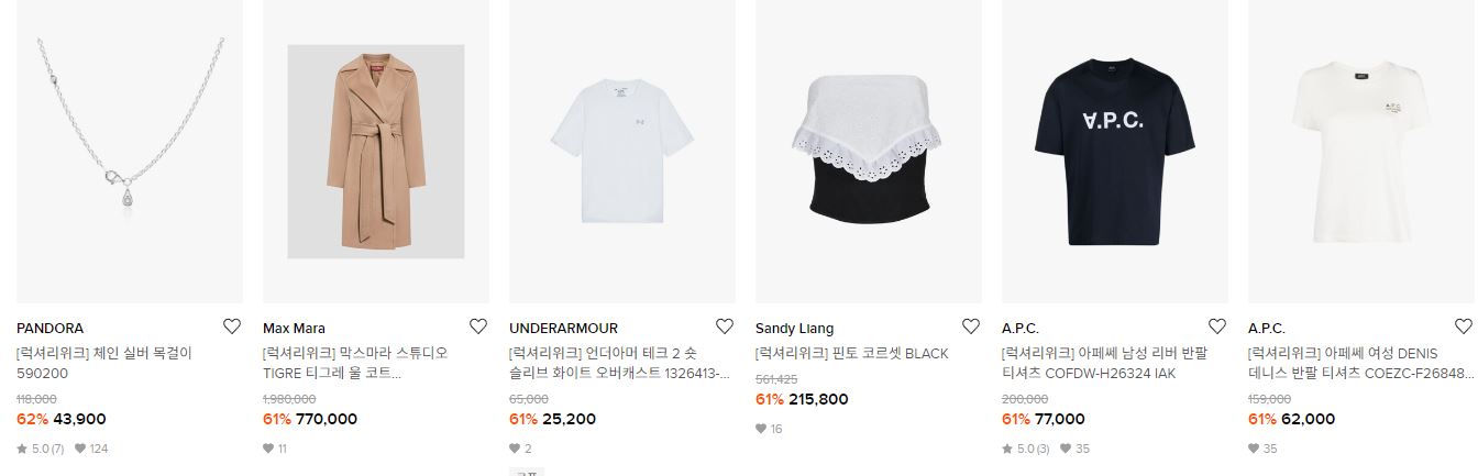 할인 품목 : 의류, 신발, 시계 등