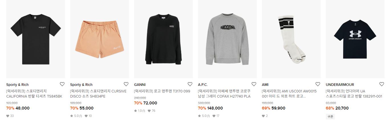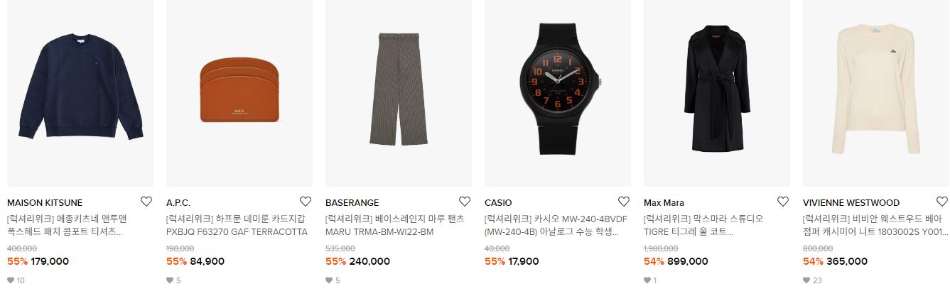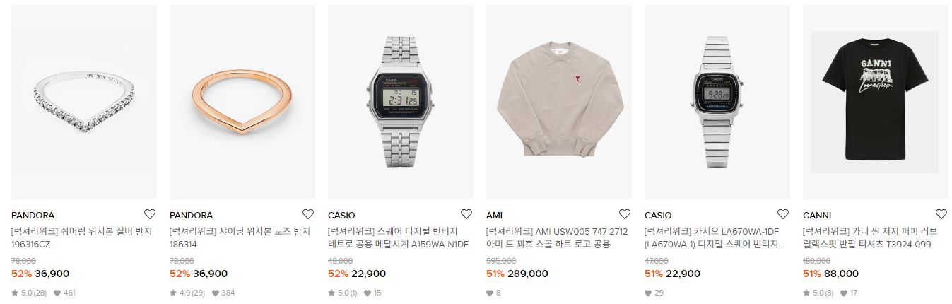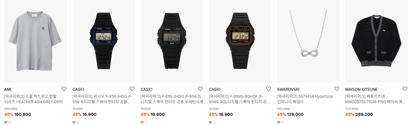 할인 품목 : 의류, 신발, 시계 등