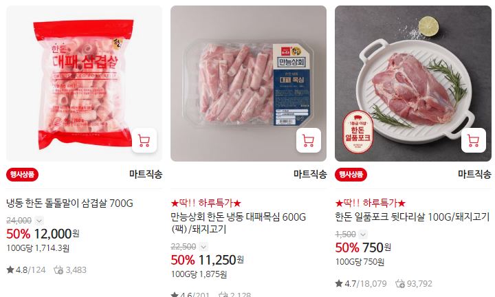 홈플러스 한돈 다양한 제품을 할인 판매하네요.