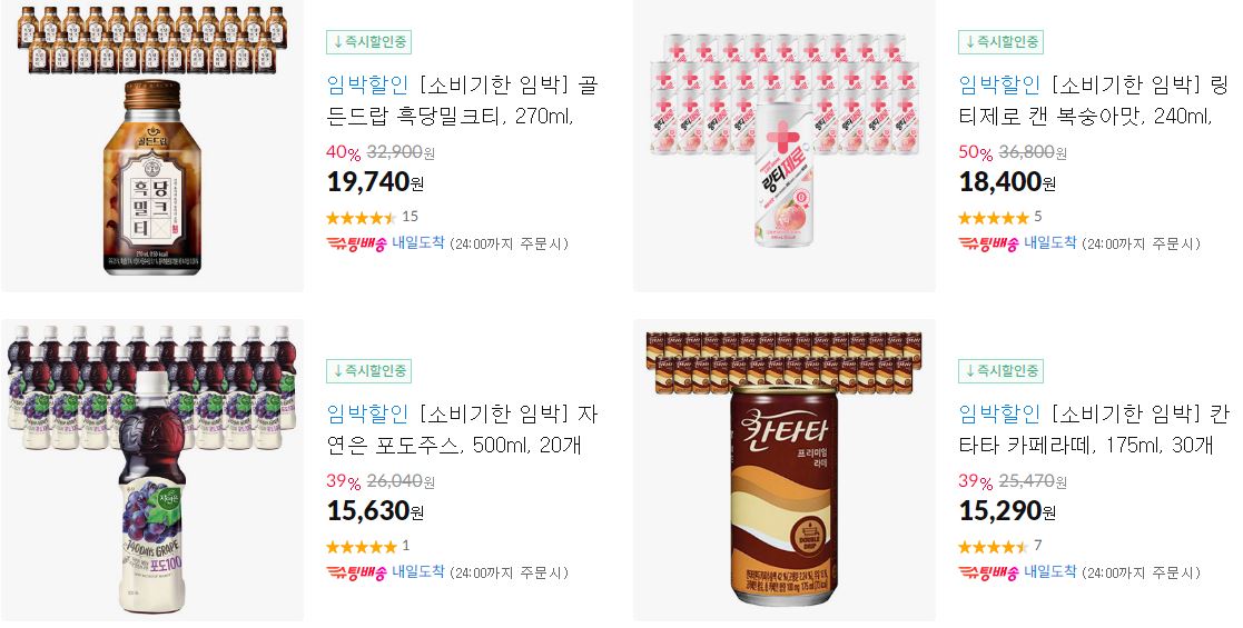 할인 품목 : 음료, 과자, 가공식품 등