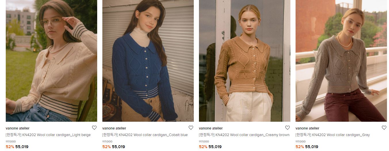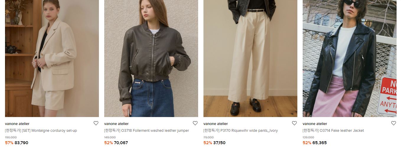 할인 품목 : 자켓, 가디건, 팬츠 등