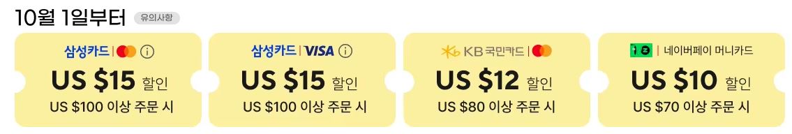 삼성 Mastercard: 80달러 이상 구매 시, 10달러 할인