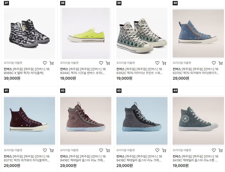 컨버스 다양한 제품을 할인 판매하네요.