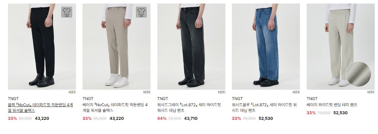 할인 품목 : 자켓, 티셔츠, 팬츠 등