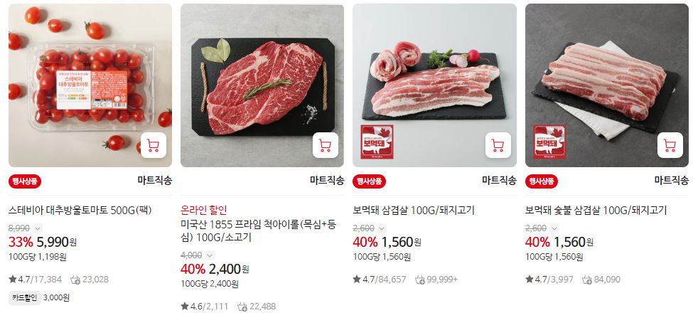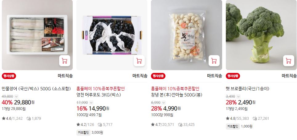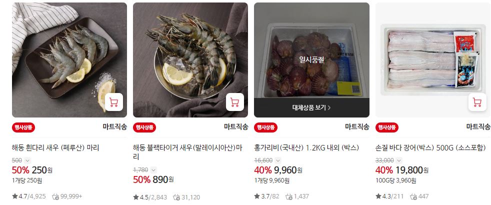 할인 품목 : 새우, 가공식품, 축산물 등