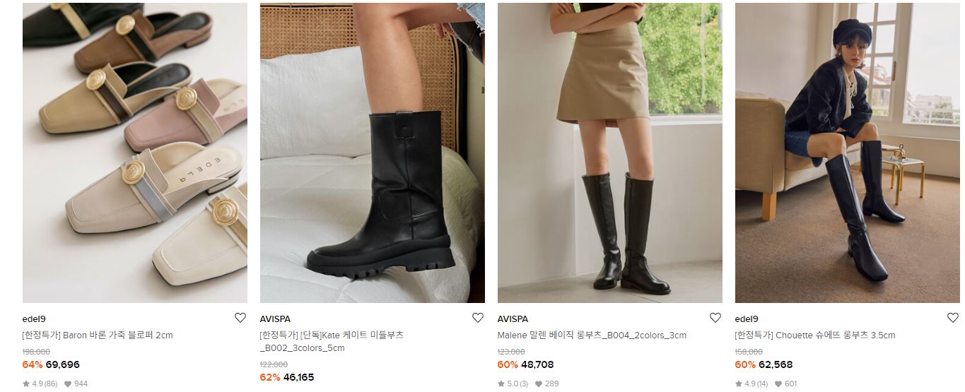 할인 품목 : 로퍼, 부츠 등
