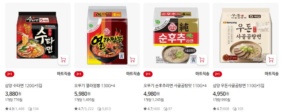 할인 품목 : 음료, 라면, 카레, 참치 등