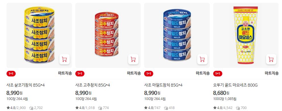 할인 품목 : 음료, 라면, 카레, 참치 등