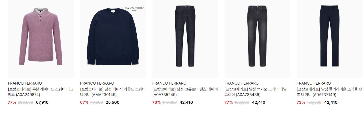 프랑코페라로 다양한 제품을 할인 판매하네요.