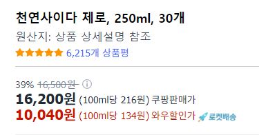 천연사이다 제로 250ml 30개 할인 정보 포스팅입니다.