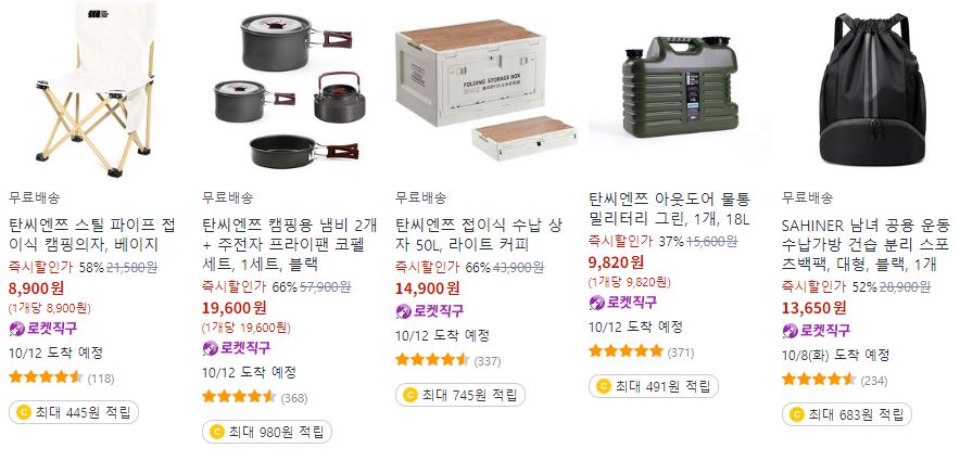 할인 품목 : 가전, 식품, 캠핑용품 등
