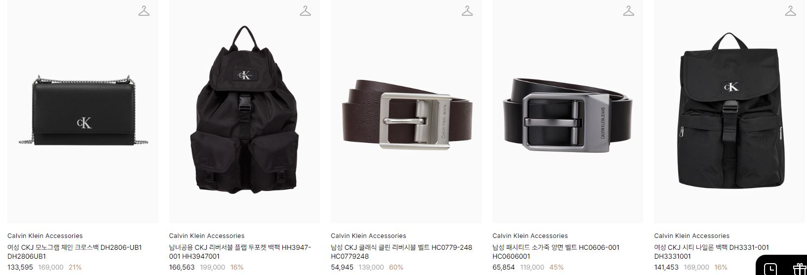 할인 품목 : 벨트, 가방, 티셔츠 등