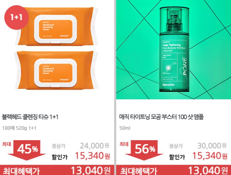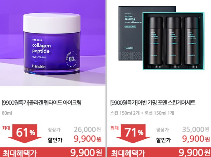 한스킨 다양한 제품을 할인 판매하네요.