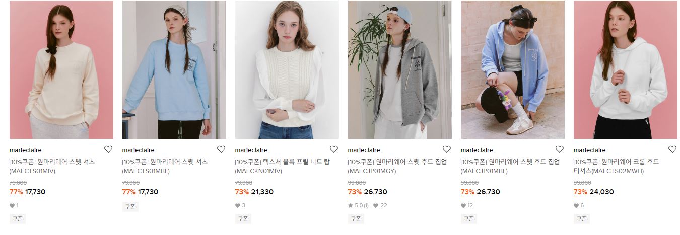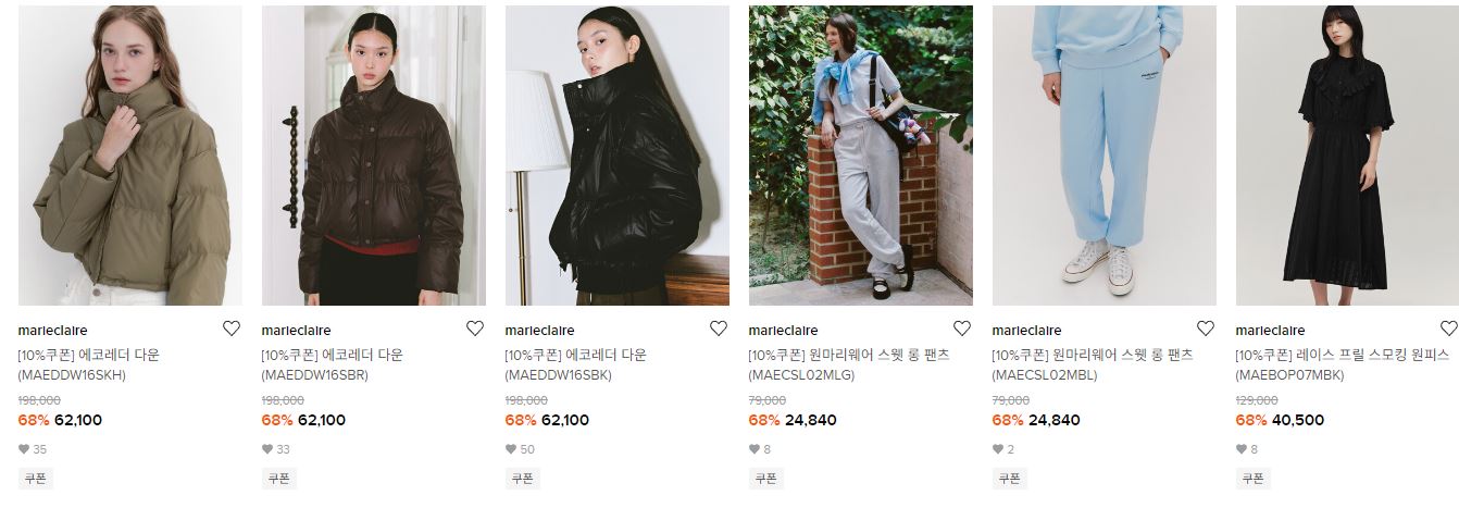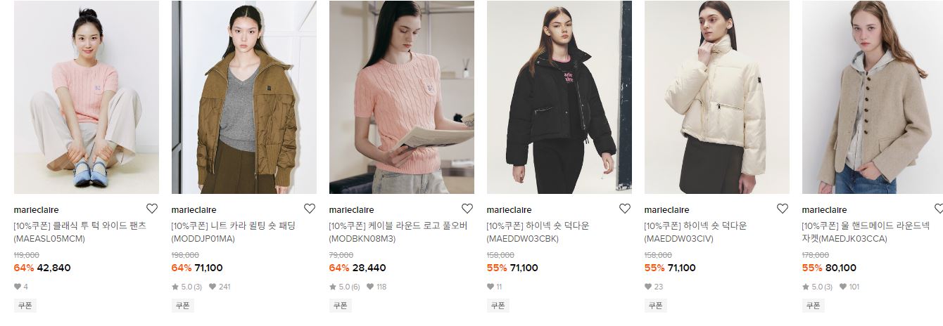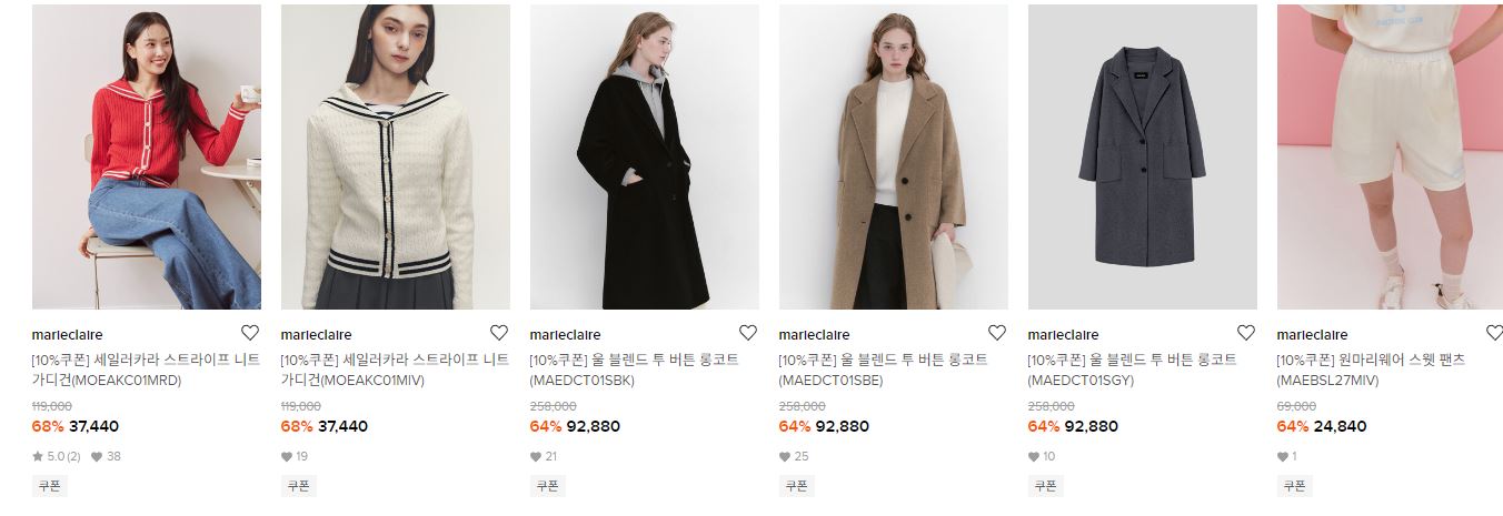 마리끌레르 다양한 제품을 할인 판매하네요.