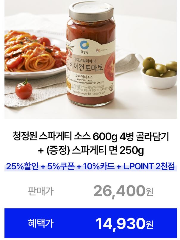 할인 품목 : 스파게티 소스, 피자, 김치 등