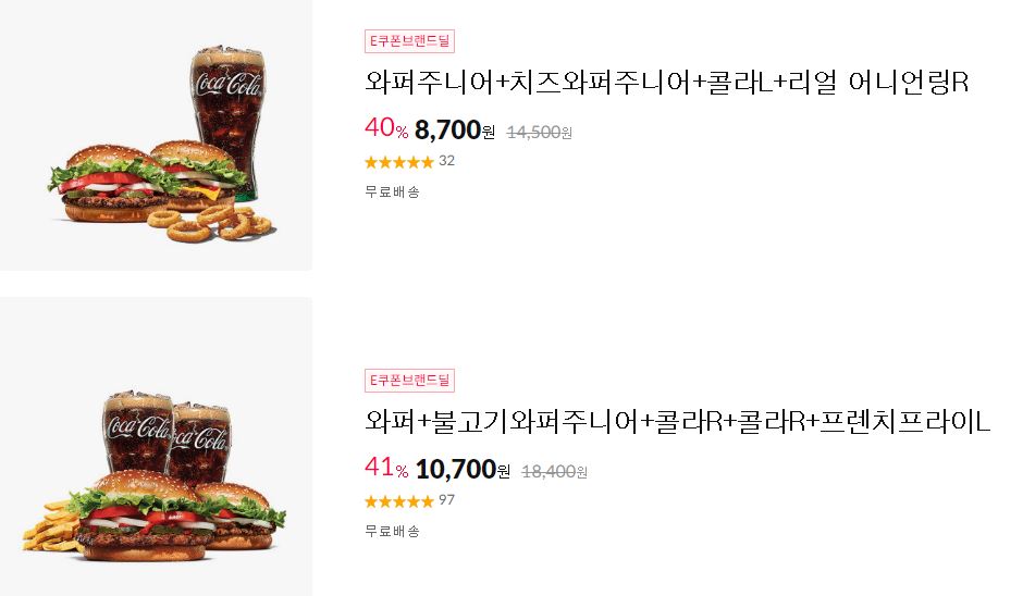 할인 브랜드 : 롯데리아, 투썸, 버거킹 등