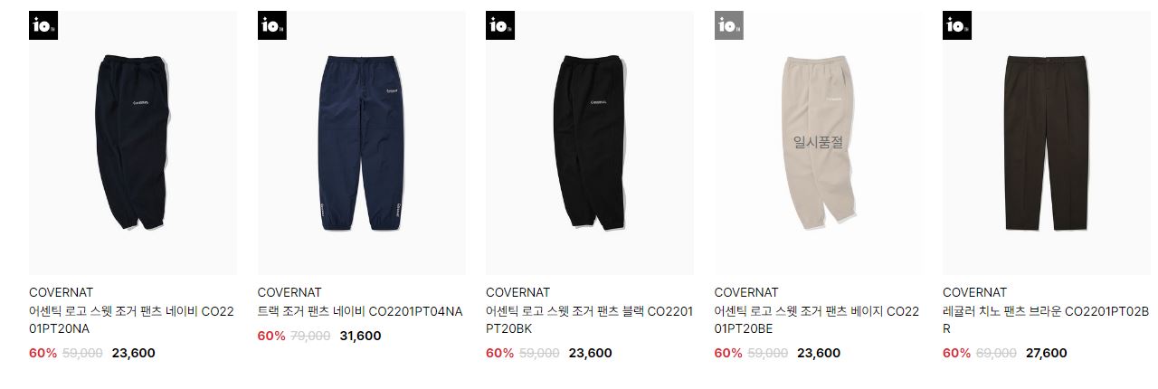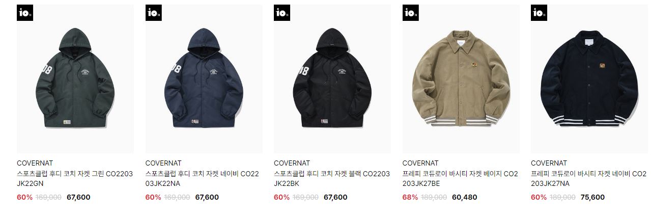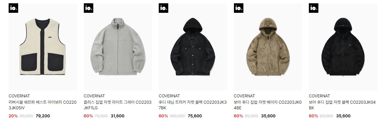 할인 품목 : 자켓, 티셔츠, 팬츠 등