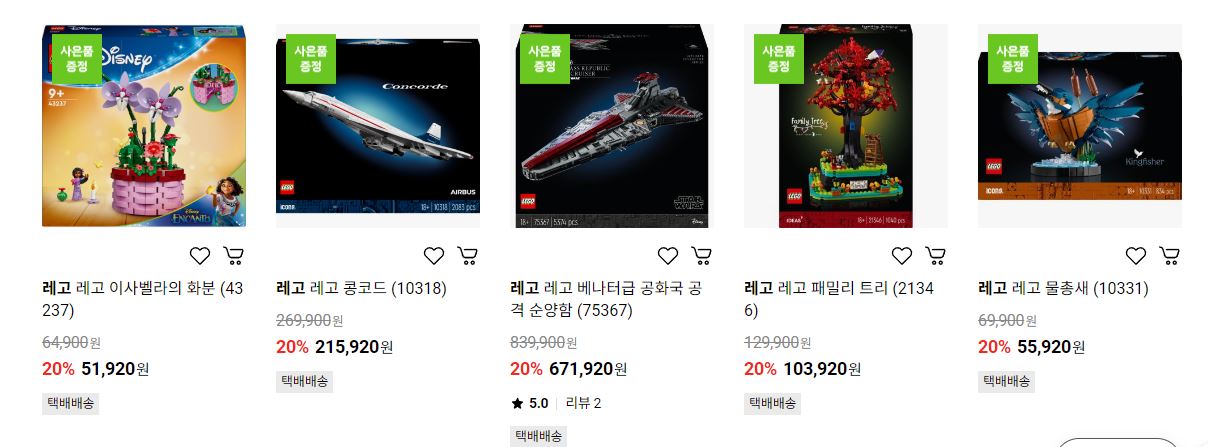 레고 다양한 제품을 할인 판매하네요.