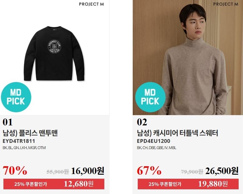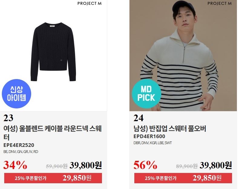 프로젝트엠 다양한 제품을 할인 판매하네요.