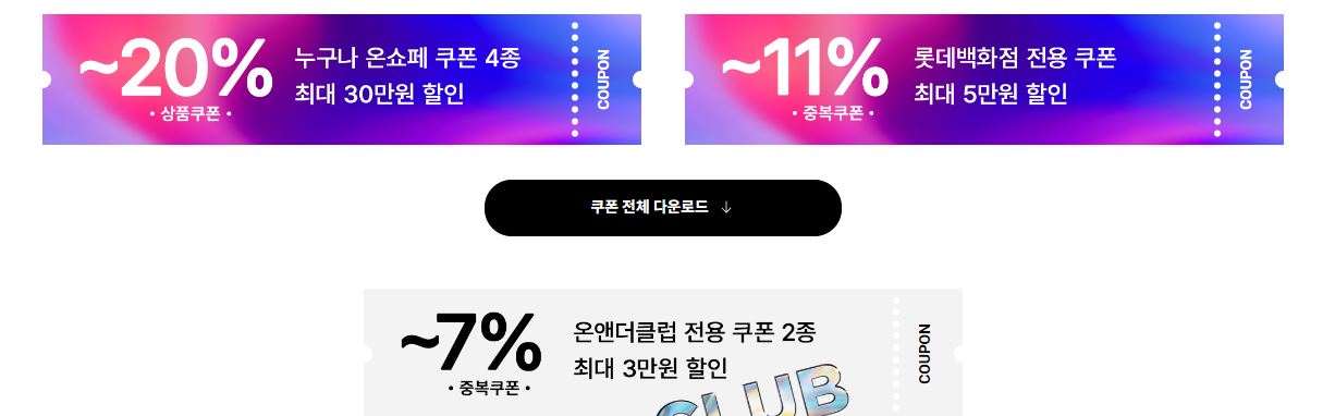 최대 20% 할인 쿠폰 및 11% 중복쿠폰 등