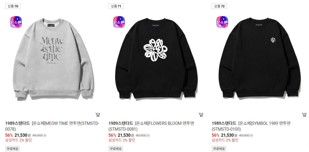1989스탠다드 다양한 제품을 할인 판매하네요.