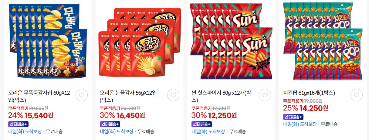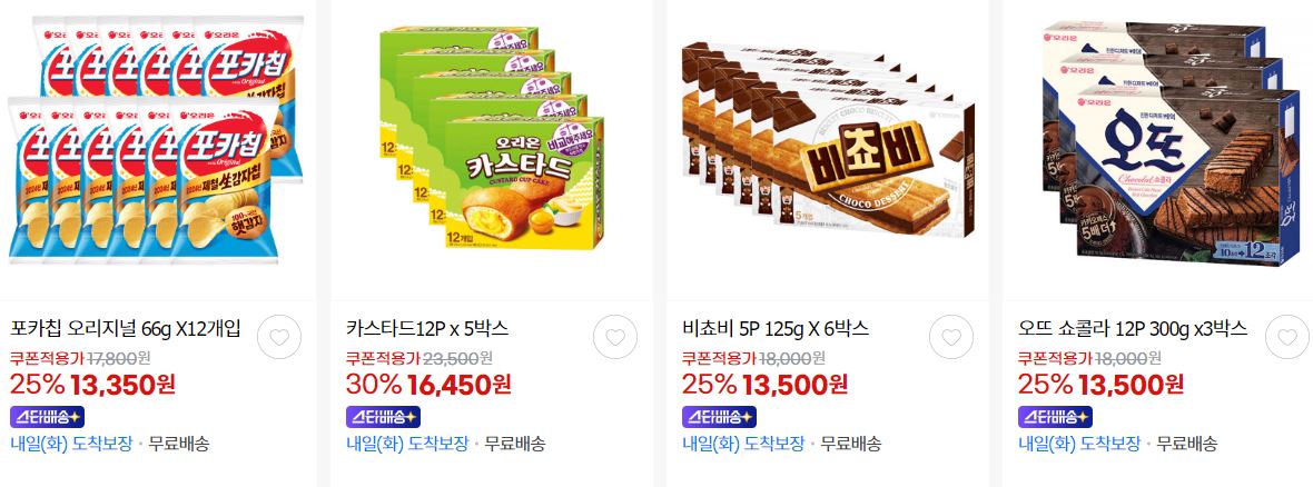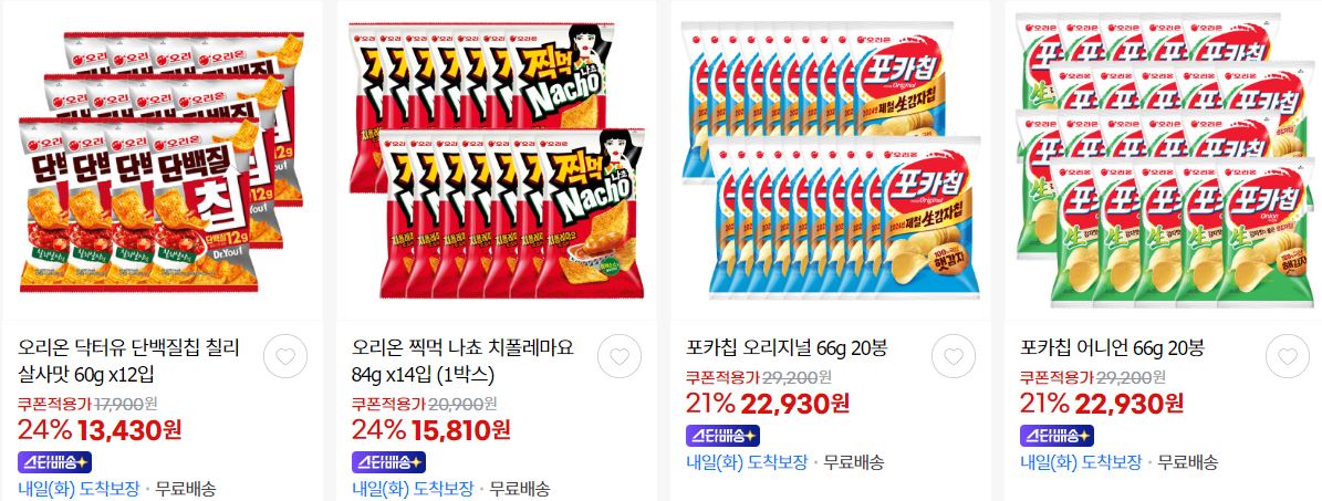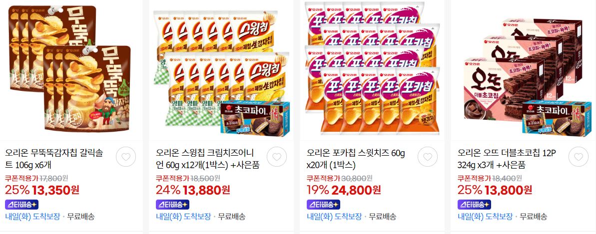 할인 품목 : 포카칩, 꼬북칩, 초코파이 등