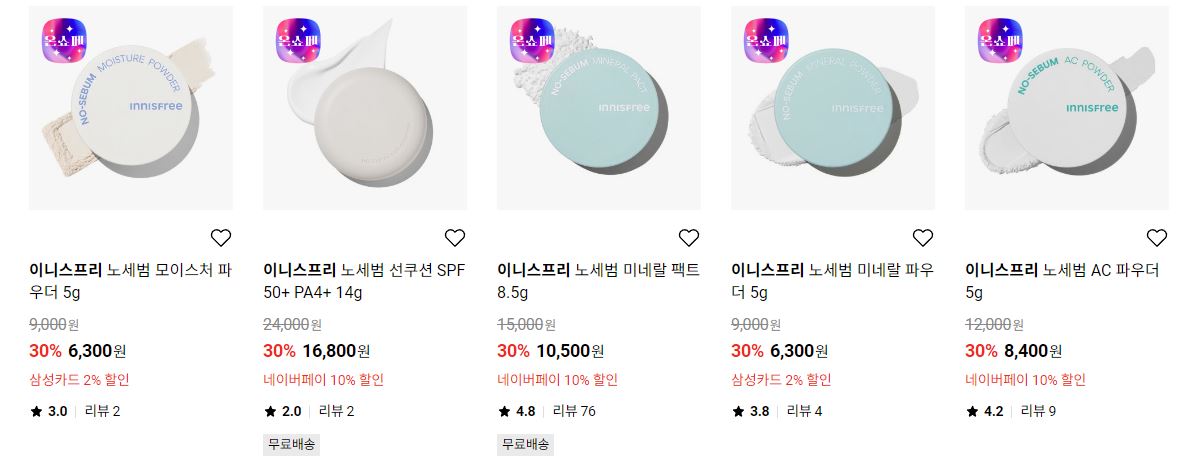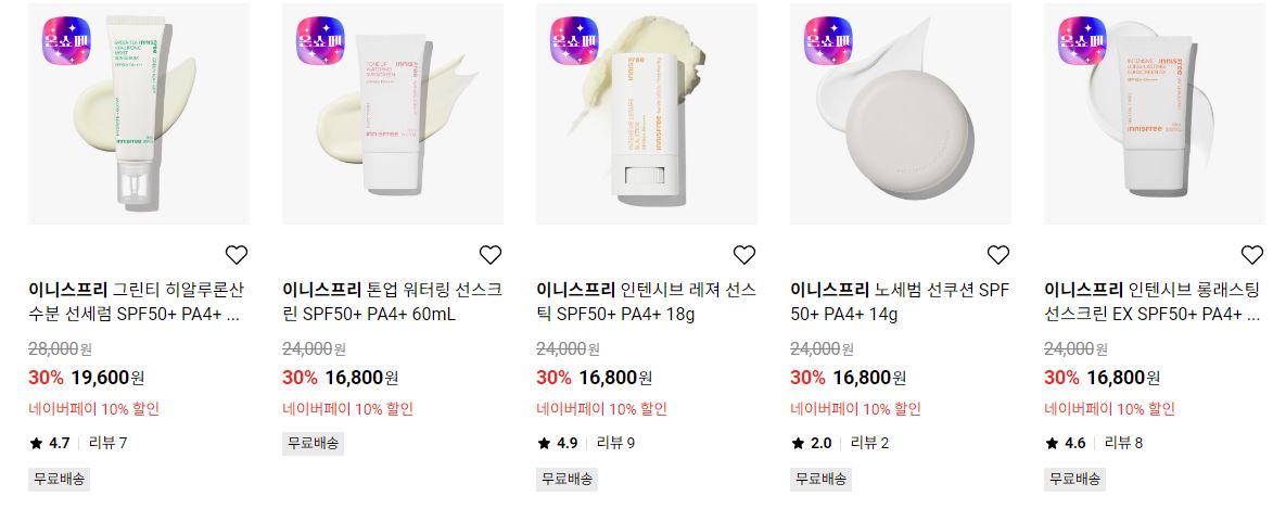 이니스프리 다양한 제품을 할인 판매하네요.