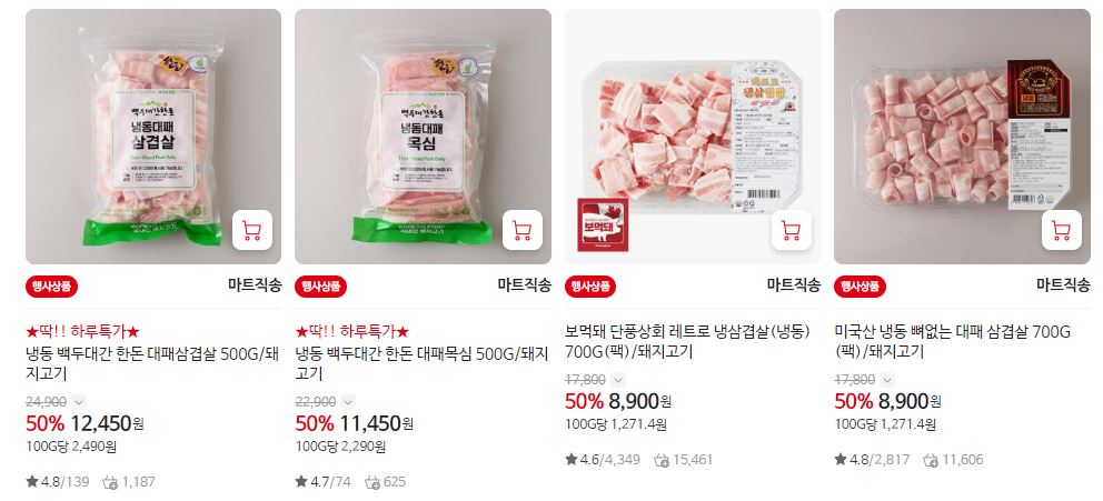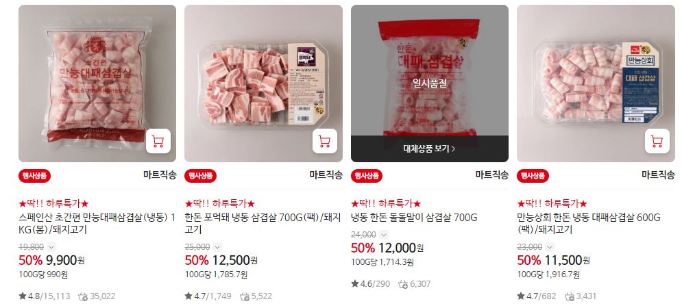 홈플러스 냉동 돼지고기 50% 할인 정보 [링크]