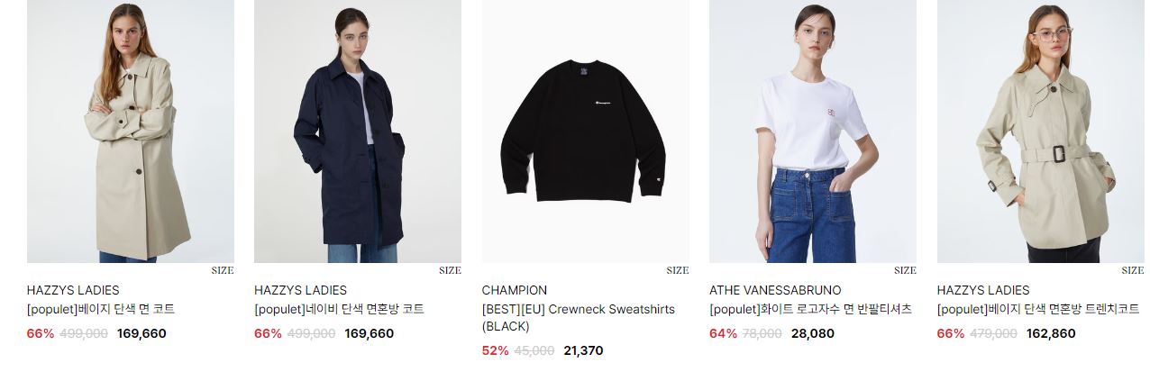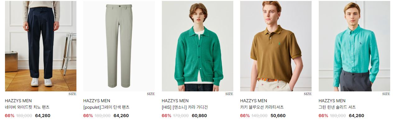 할인 품목 : 티셔츠, 자켓, 신발 등