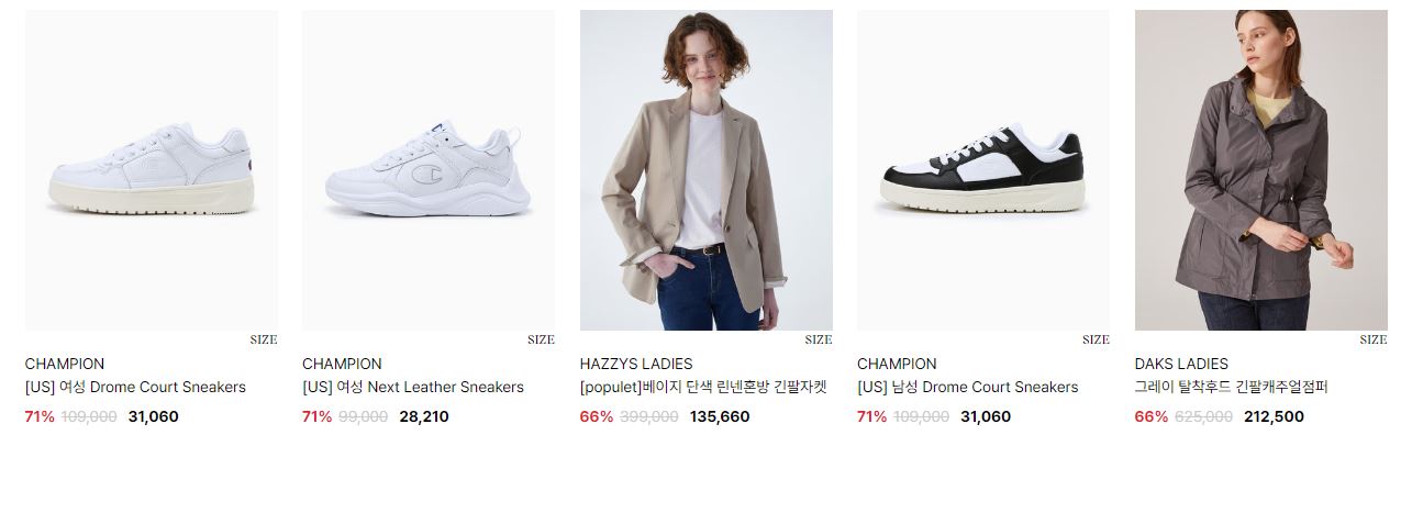 할인 품목 : 티셔츠, 자켓, 신발 등