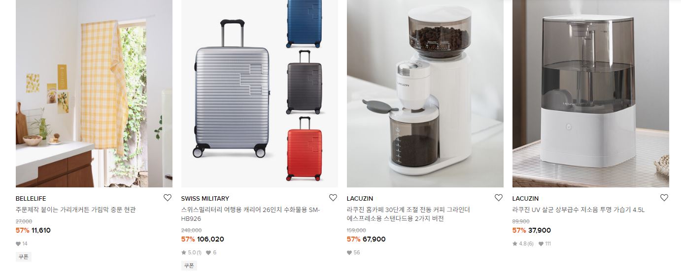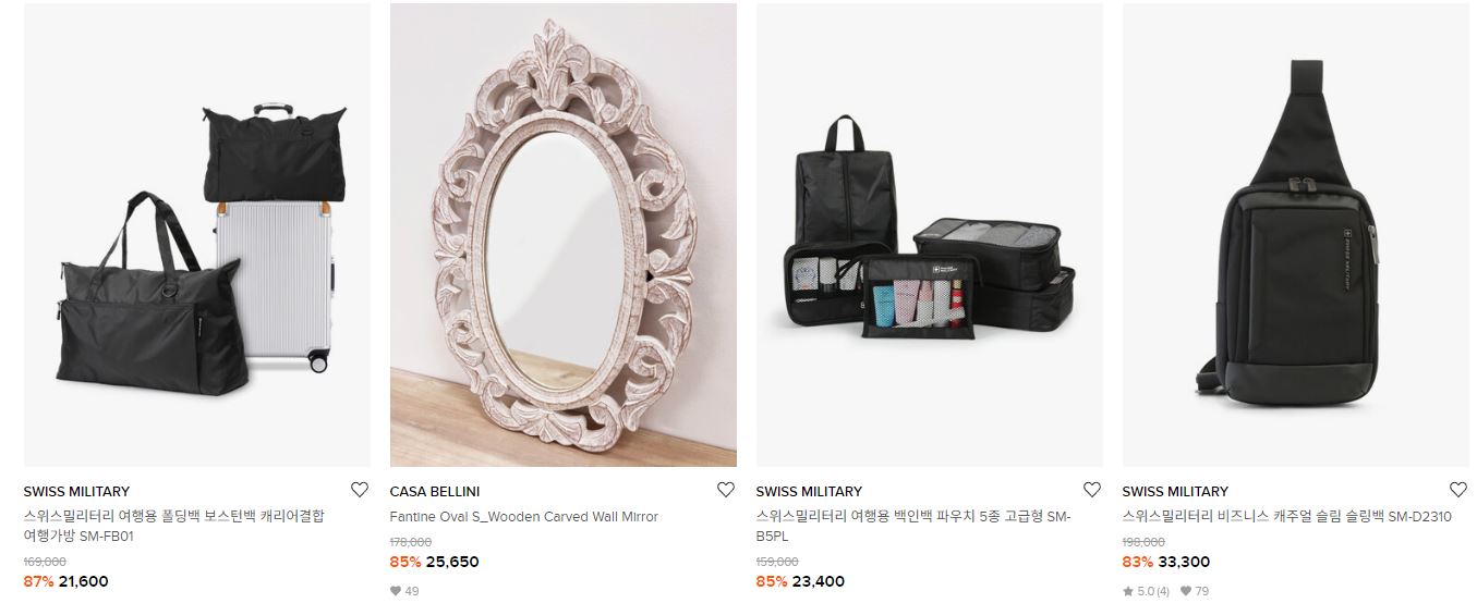할인 품목 : 가전, 캐리어, 가방, 식기 등