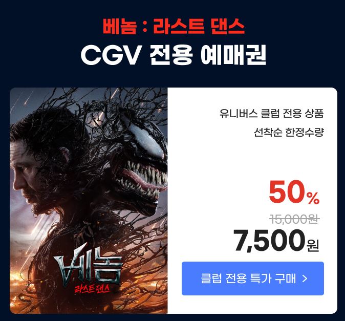 CGV 예매권 베놈 라스트댄스 50% 할인 정보 [링크]