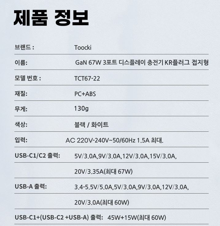 Toocki GaN PPS 67W 3포트 접지형 멀티충전기 할인 정보 [링크]