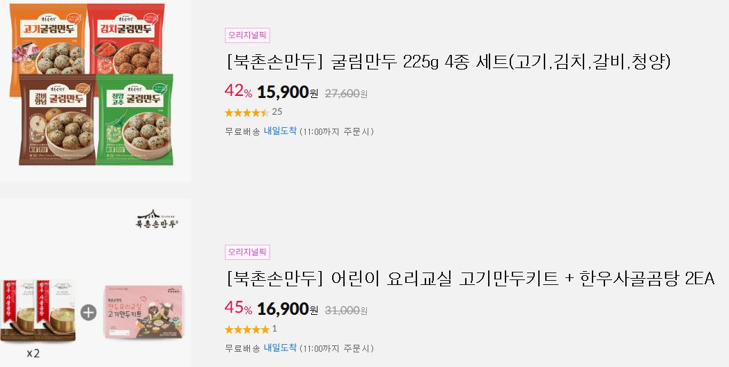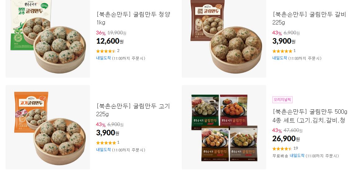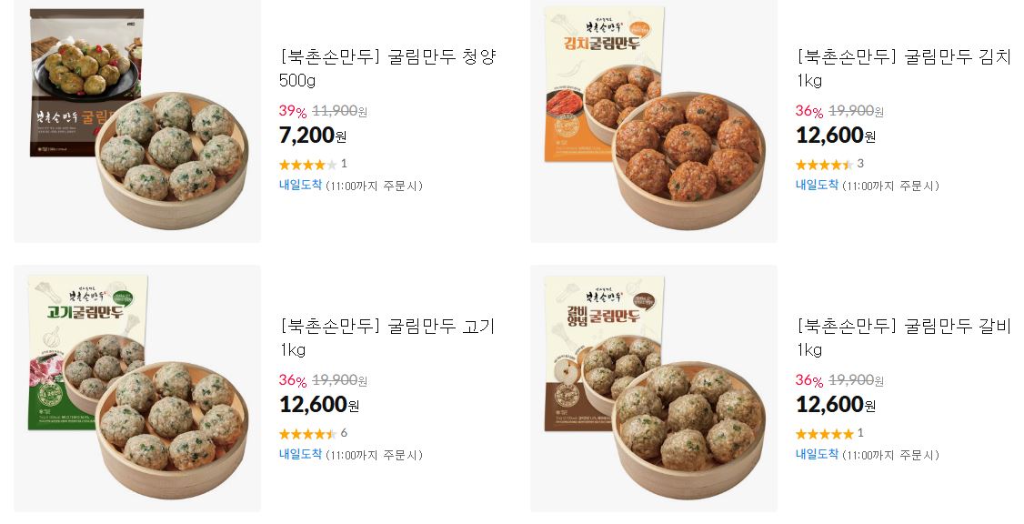 북촌손만두 다양한 제품을 할인 판매하네요.