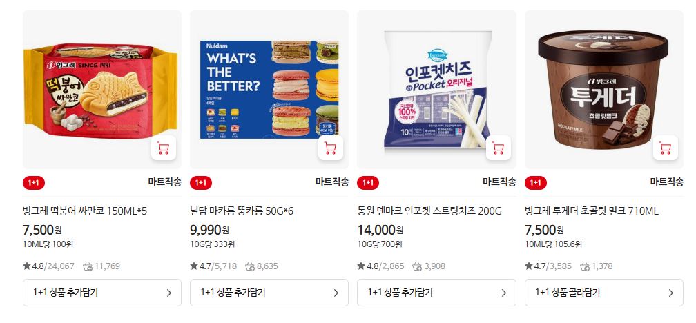 홈플러스 다양한 제품을 1+1 판매하네요.