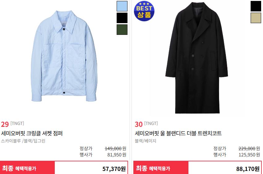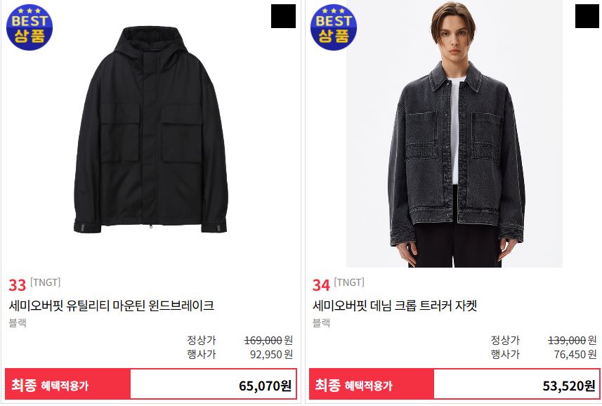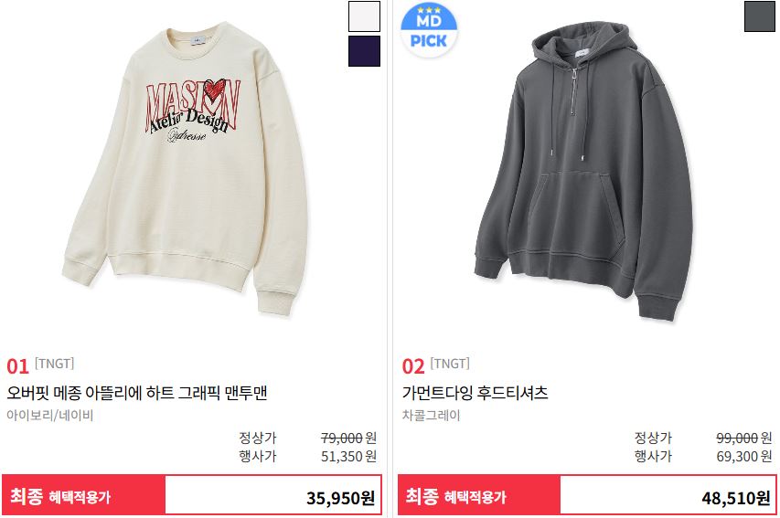 할인 품목 : 맨투맨, 니트, 자켓 등
